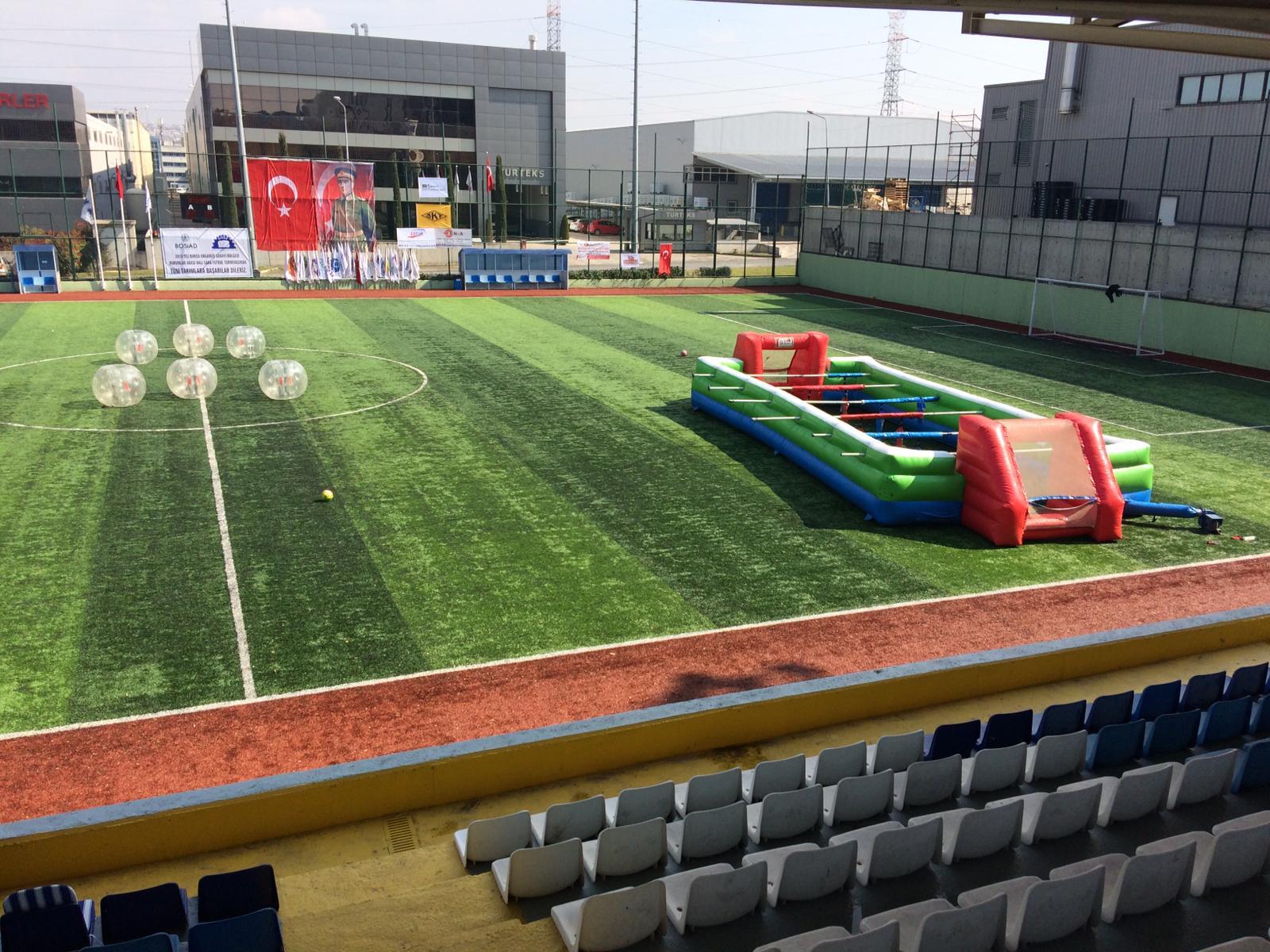 Öğrencilerin sınav stresini atması için birebirdir. Bahar şenliklerinde kurduğumuz balon futbolu sahası, etkinliğin en çok ilgi gören noktası olur. Sırada bekleyen öğrenciler için yan tarafta şişme oyuncak kiralama hizmetimizden faydalanarak dev bir oyun parkuru da oluşturabilirsiniz.